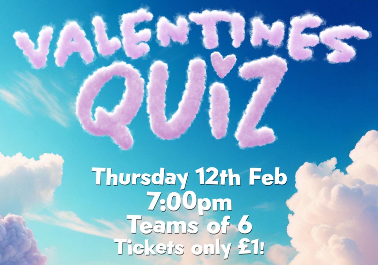 Cupid is calling! Join us for our Valentines Quiz hosted by Jacob. Teams of 6 and tickets are only £1. Grab your favourite people bring your best trivia game and make it a night to remember!